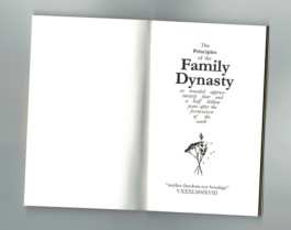 The Principles of the Family Dynasty is a 56-page staple-bound booklet of art and epigrams printed on fine paper in Berlin, Germany.